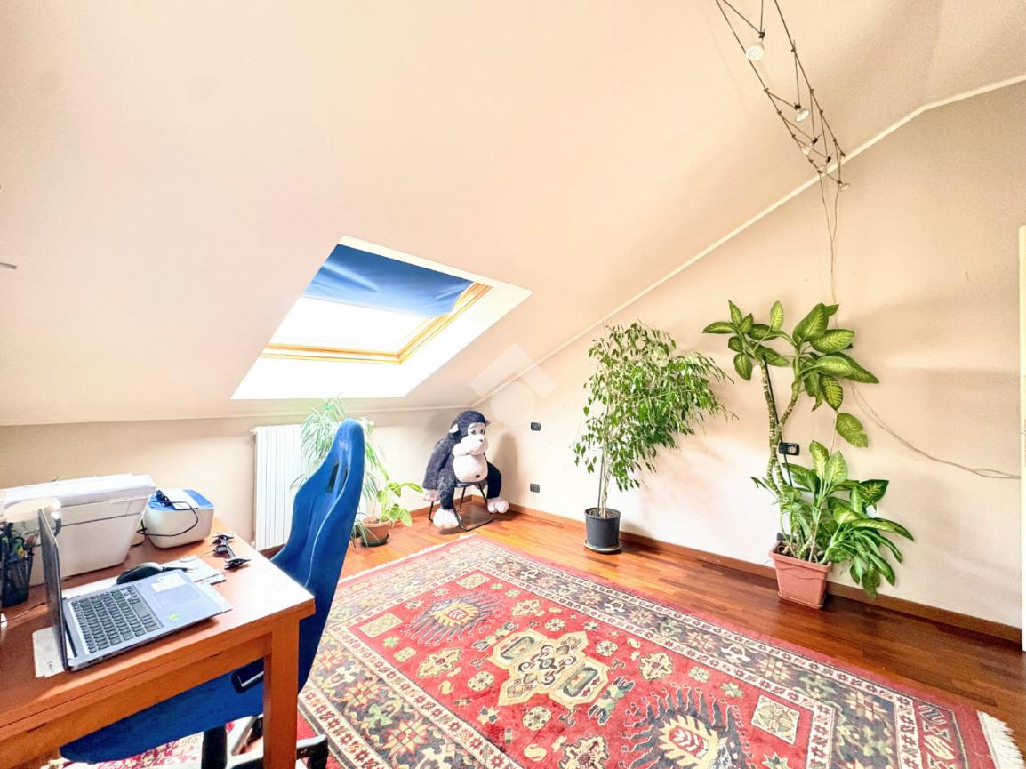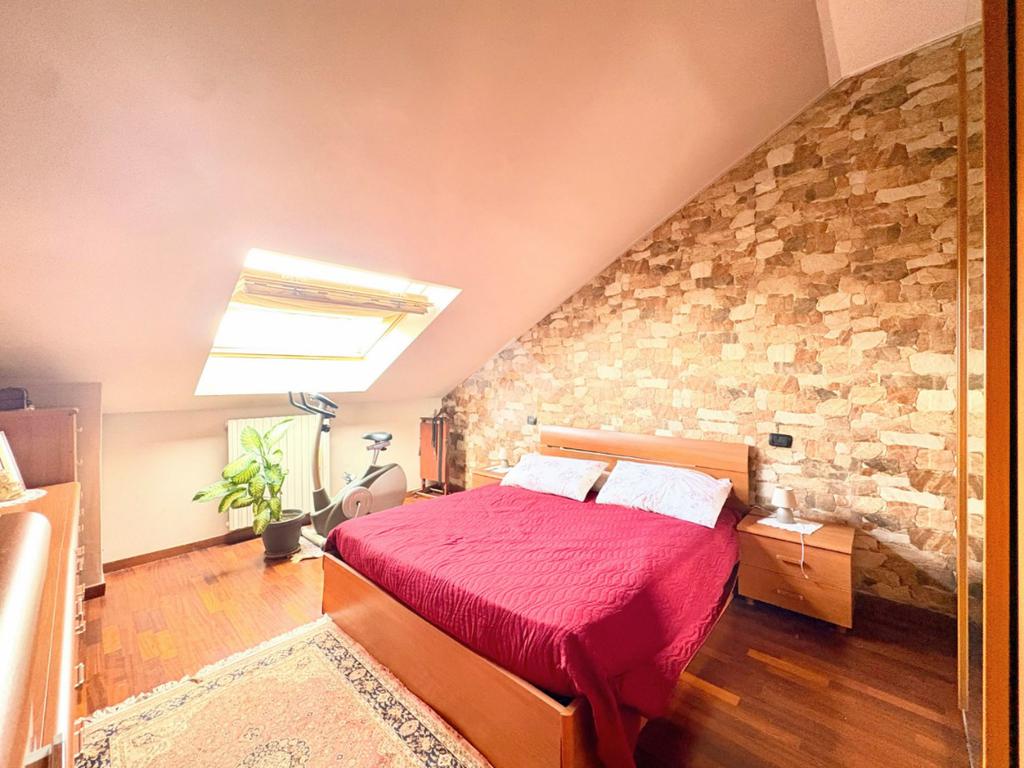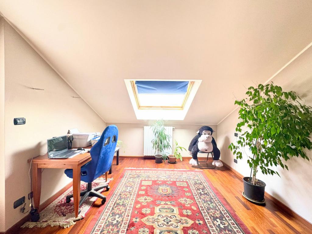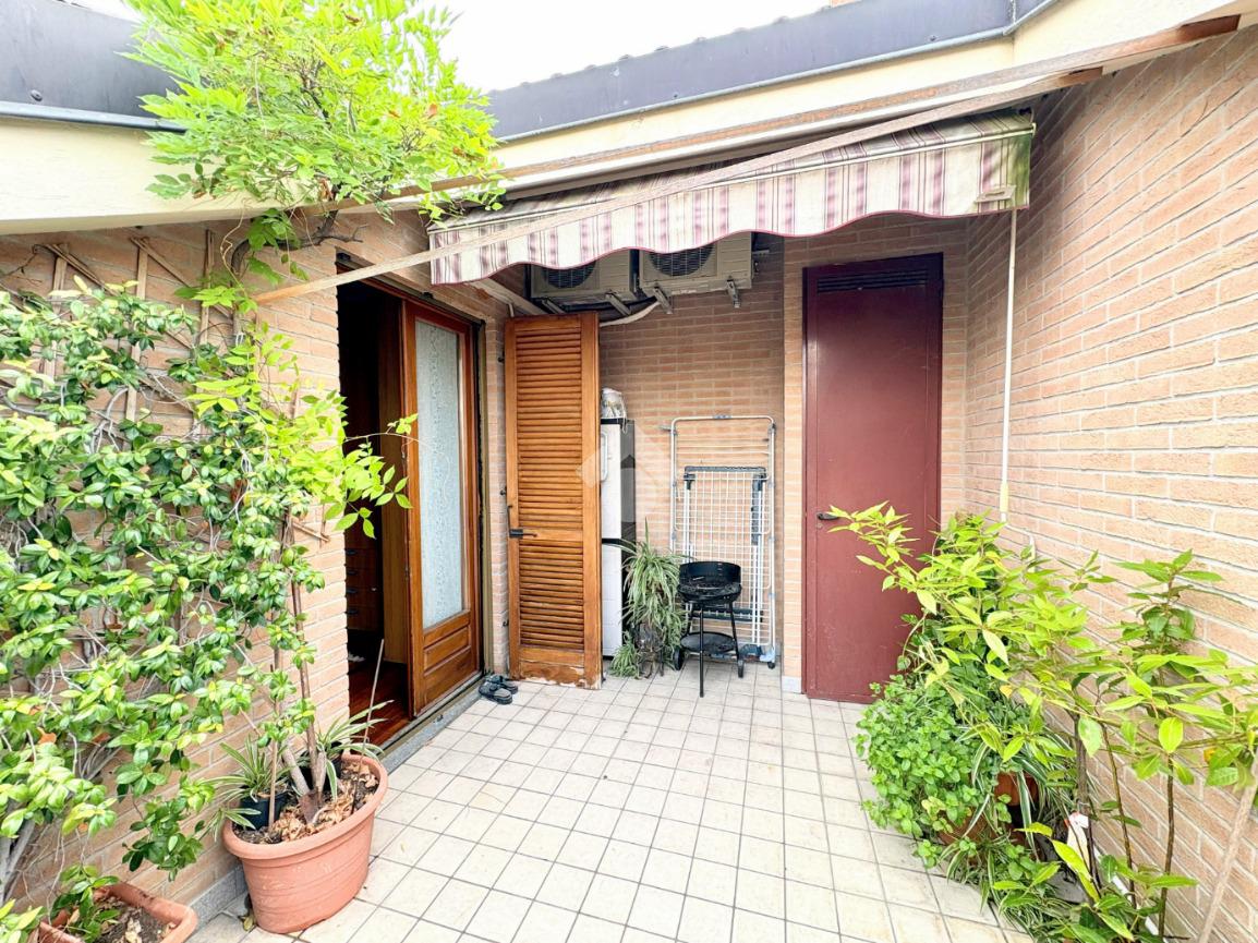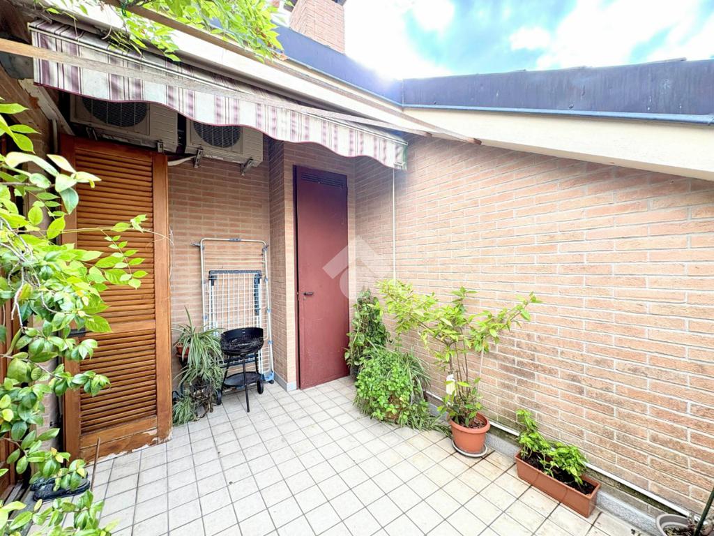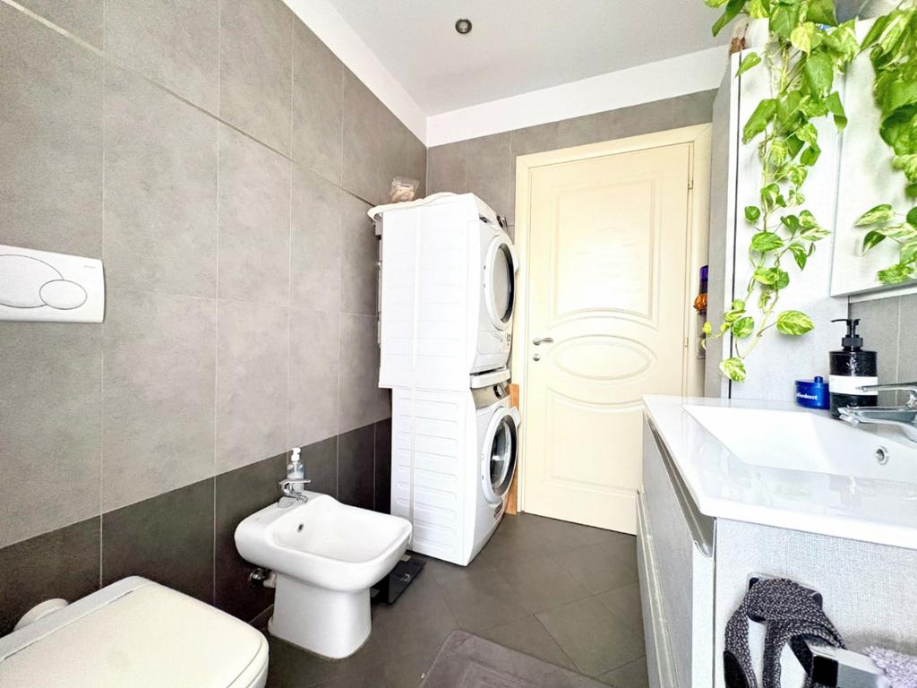 A completare il piano, troviamo un comodo ripostiglio e un bagno illuminato da una portafinestra che conduce a un balcone.