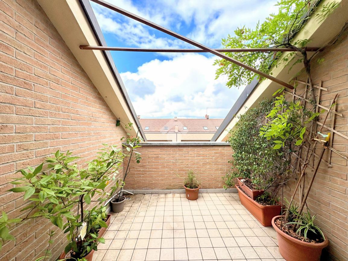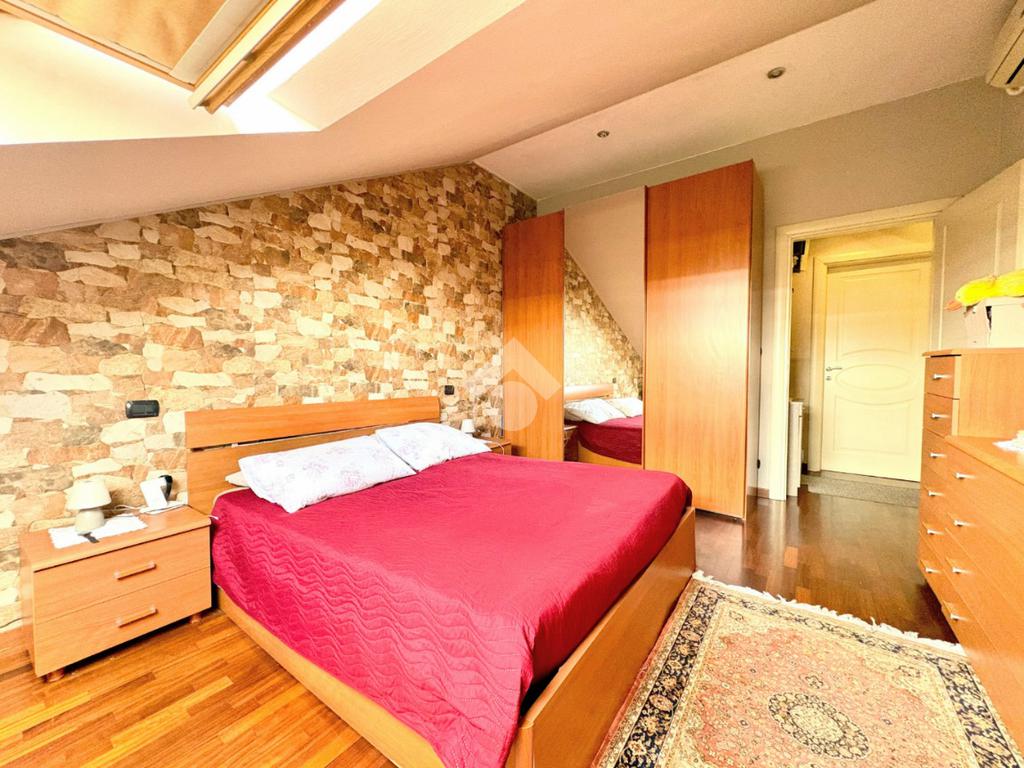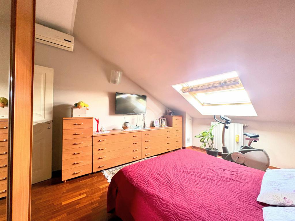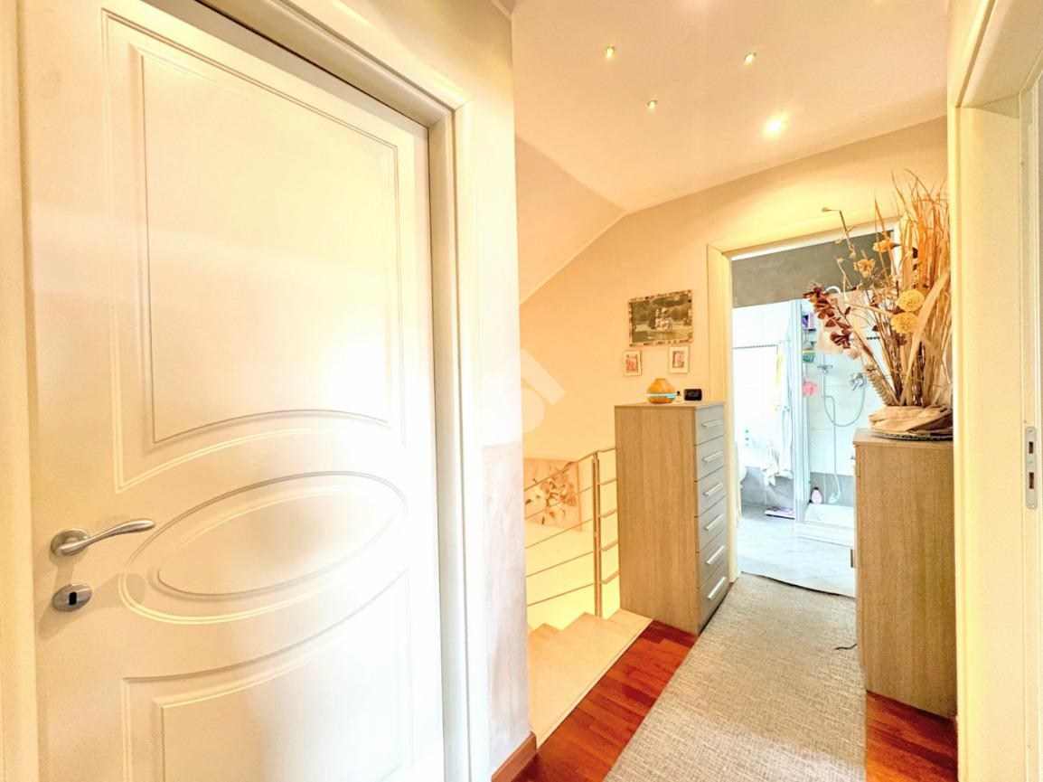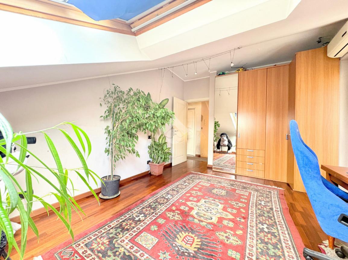 A completare il piano, troviamo un comodo ripostiglio e un bagno illuminato da una portafinestra che conduce a un balcone.