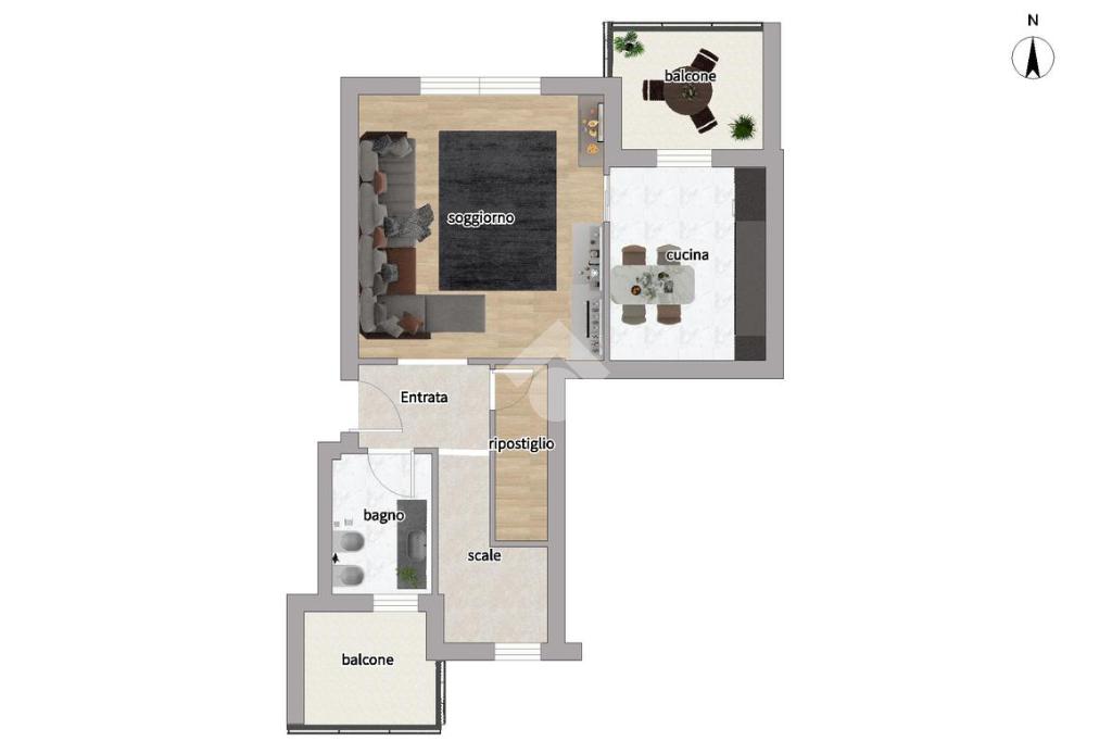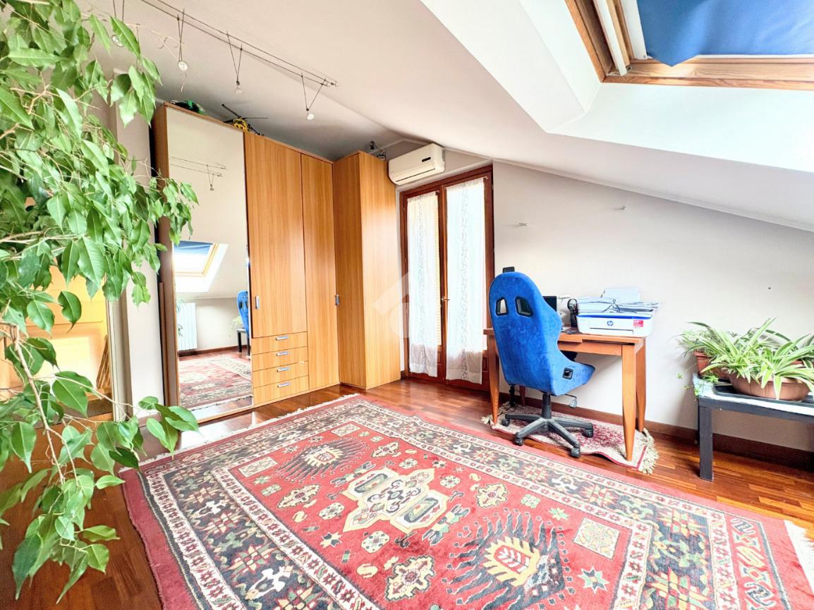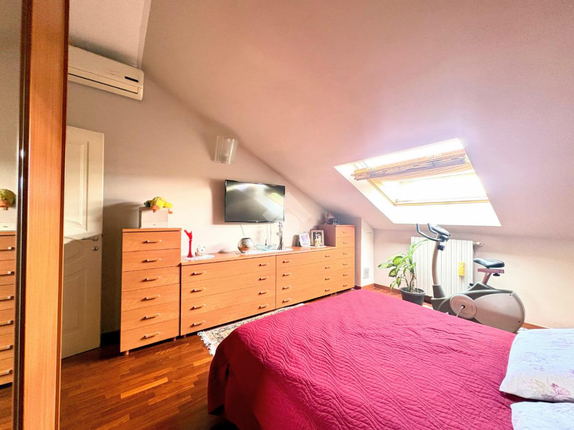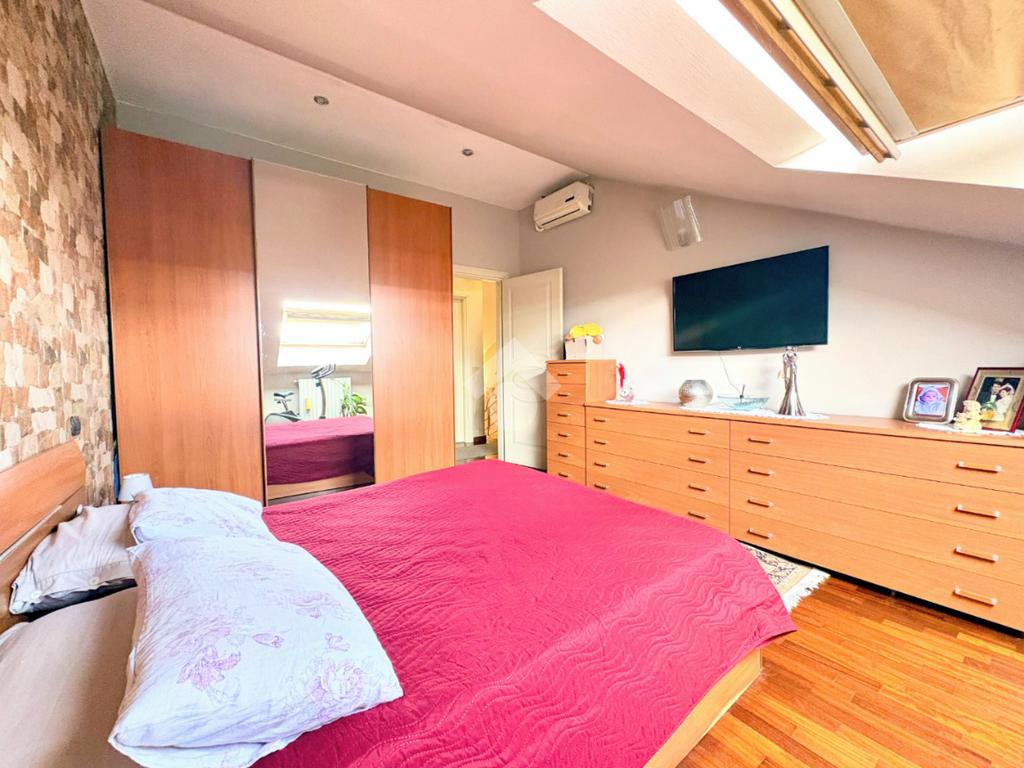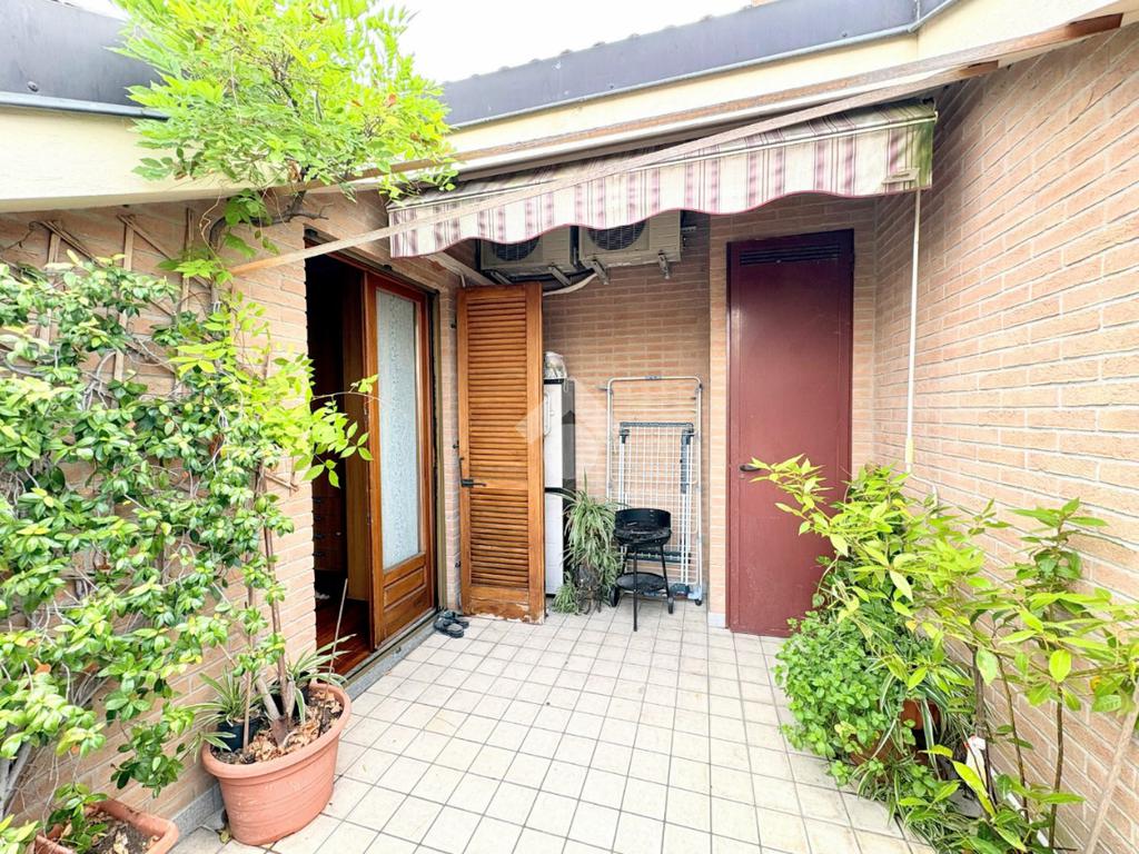 A completare il piano, troviamo un comodo ripostiglio e un bagno illuminato da una portafinestra che conduce a un balcone.