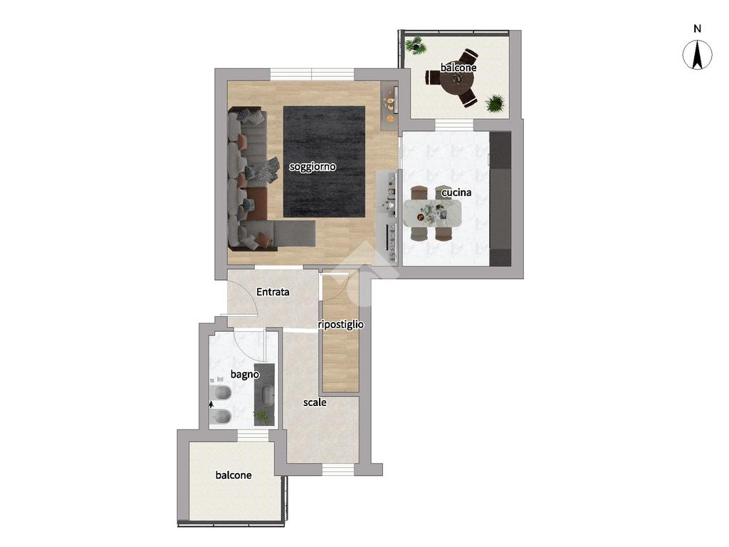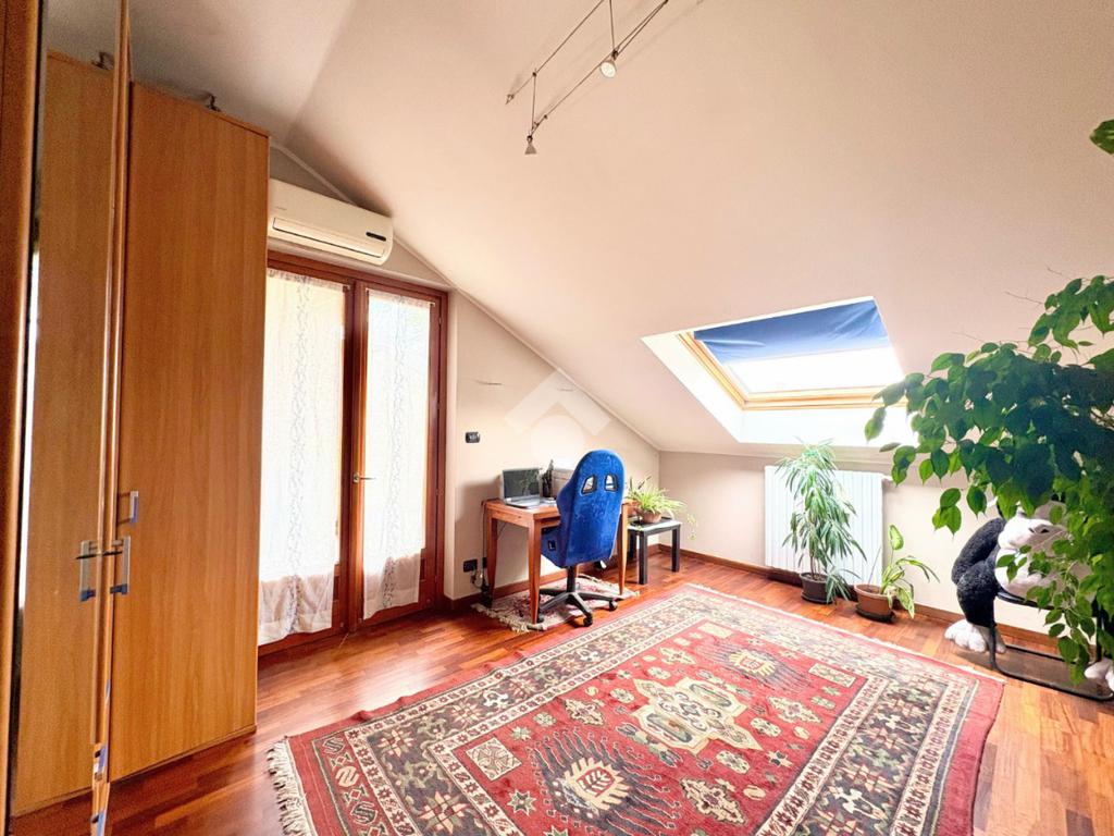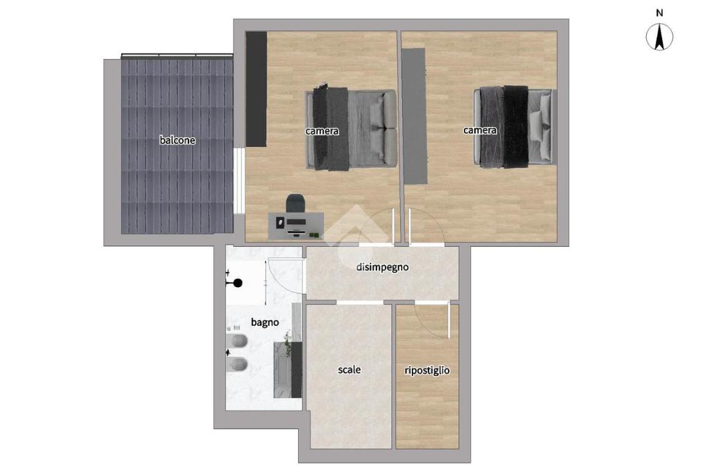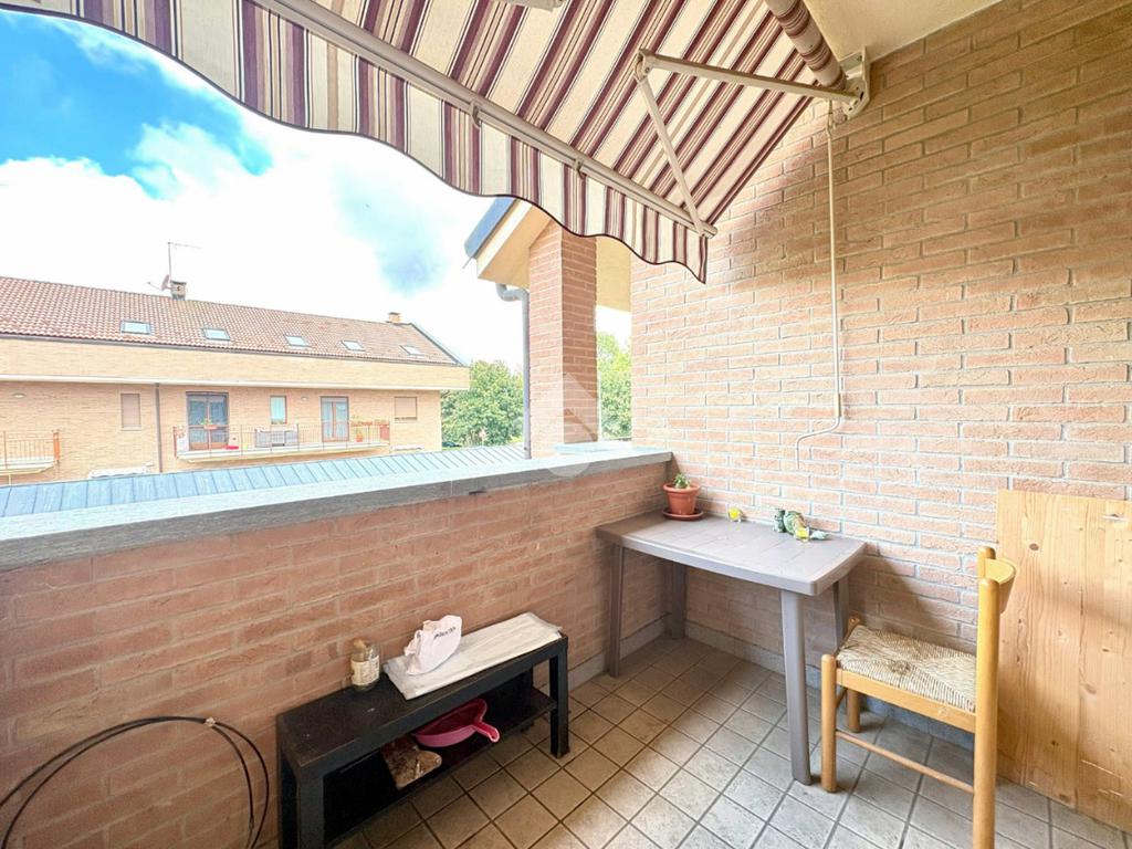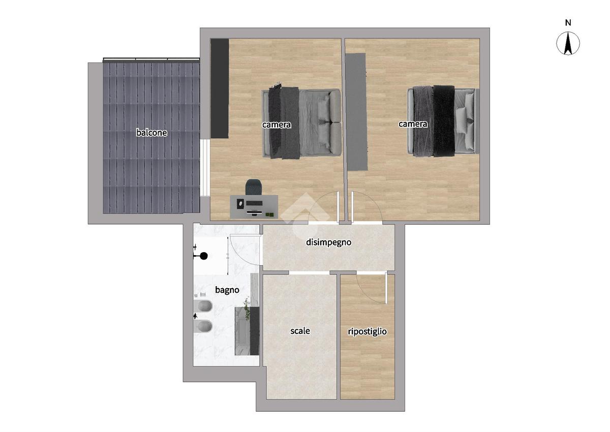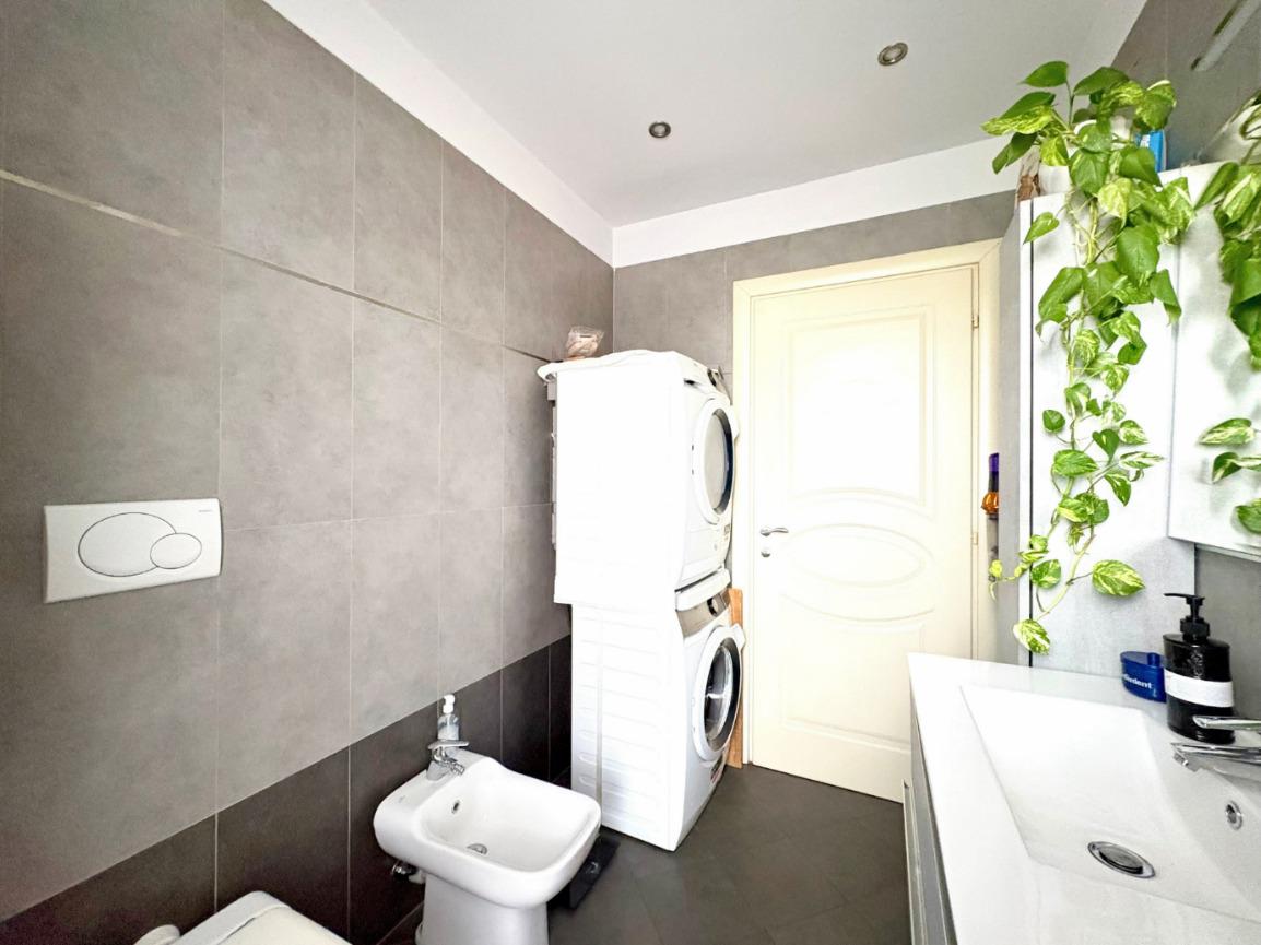 A completare il piano, troviamo un comodo ripostiglio e un bagno illuminato da una portafinestra che conduce a un balcone.