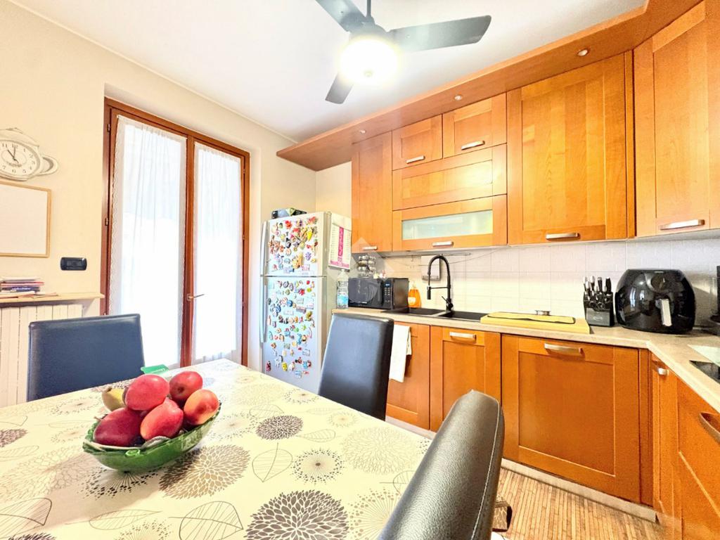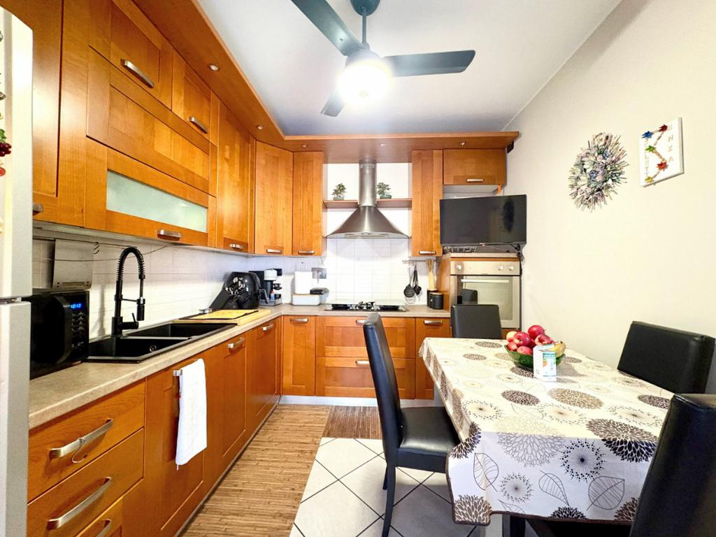 La cucina abitabile, dotata di accesso al primo terrazzino, è perfetta per cene in famiglia o con amici.