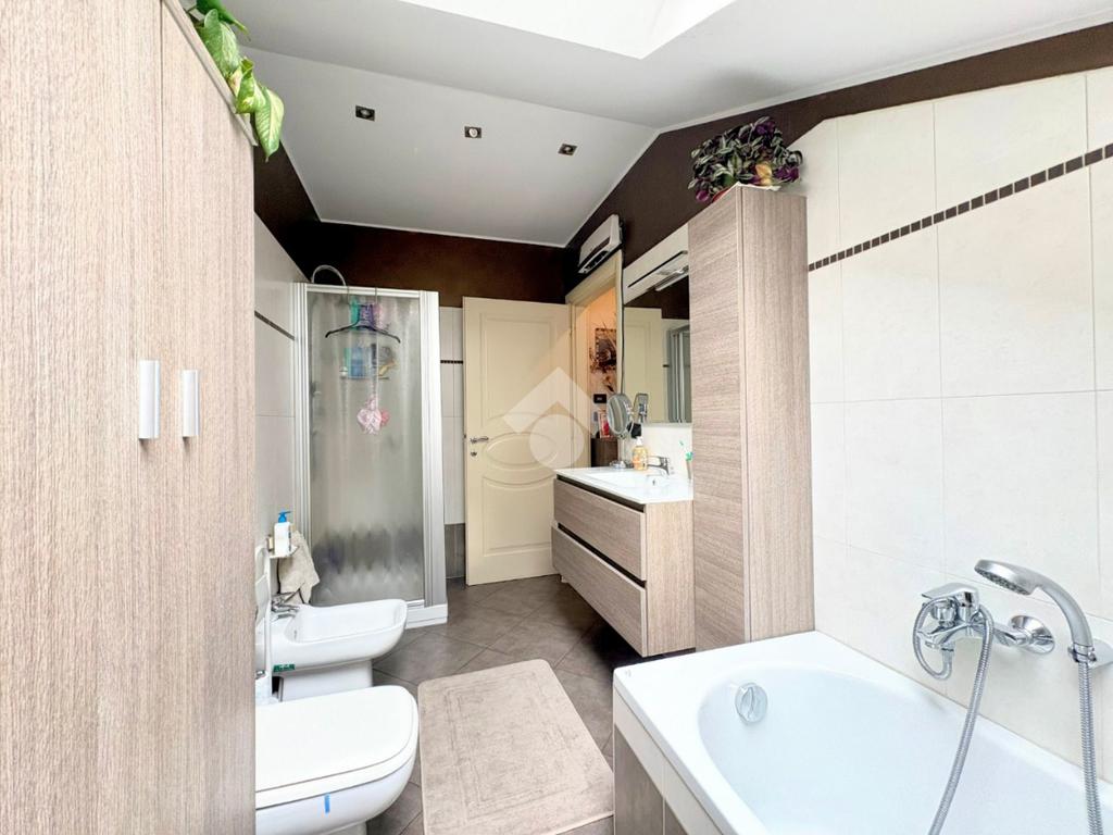 Gli spazi sono ben distribuiti e il servizio finestrato è completo di doccia e vasca, offrendo il massimo del comfort.