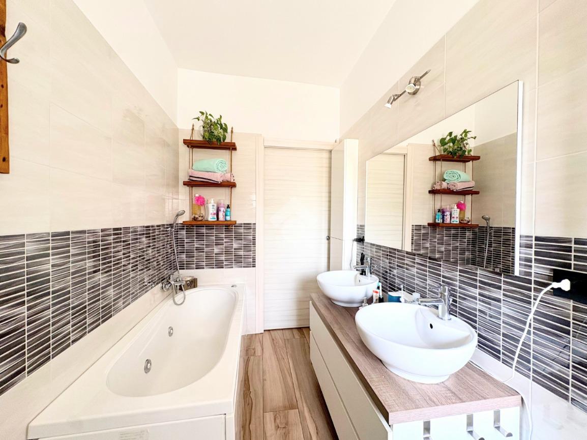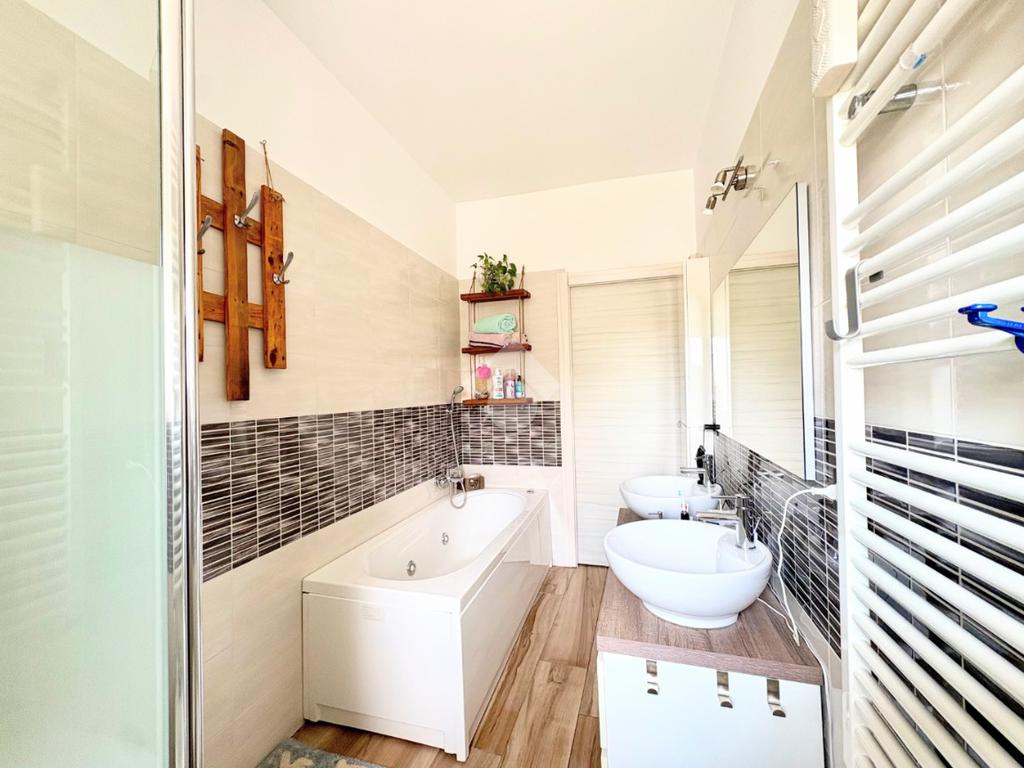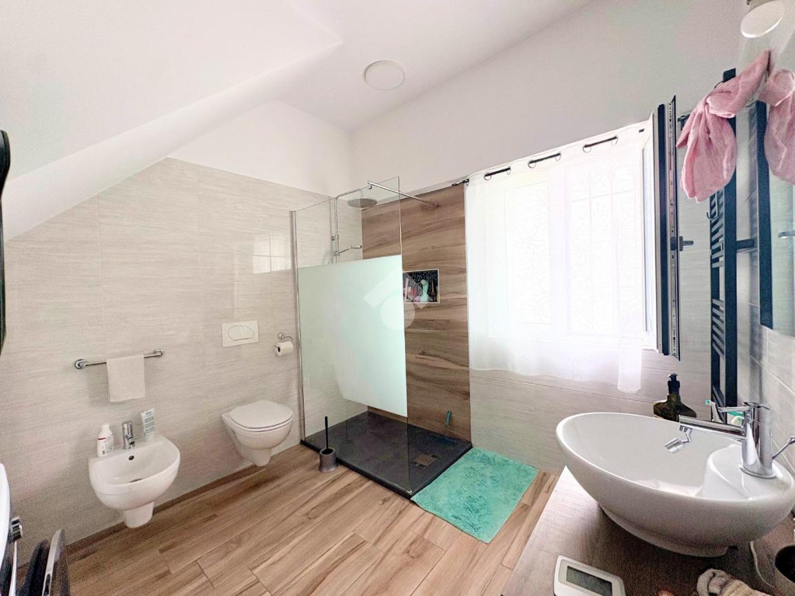 Al piano superiore facilmente accessibile da una scala interna vi è la zona notte che comprende tre camere da letto matrimoniali, di cui due con cabina armadio, per ospitare tutti i membri della famiglia. Il servizio è completo di doccia e vasca.