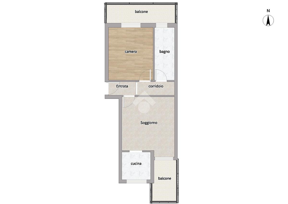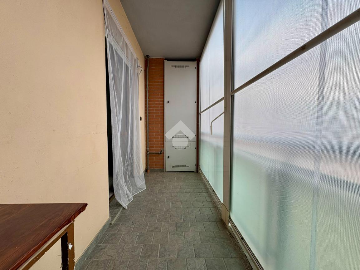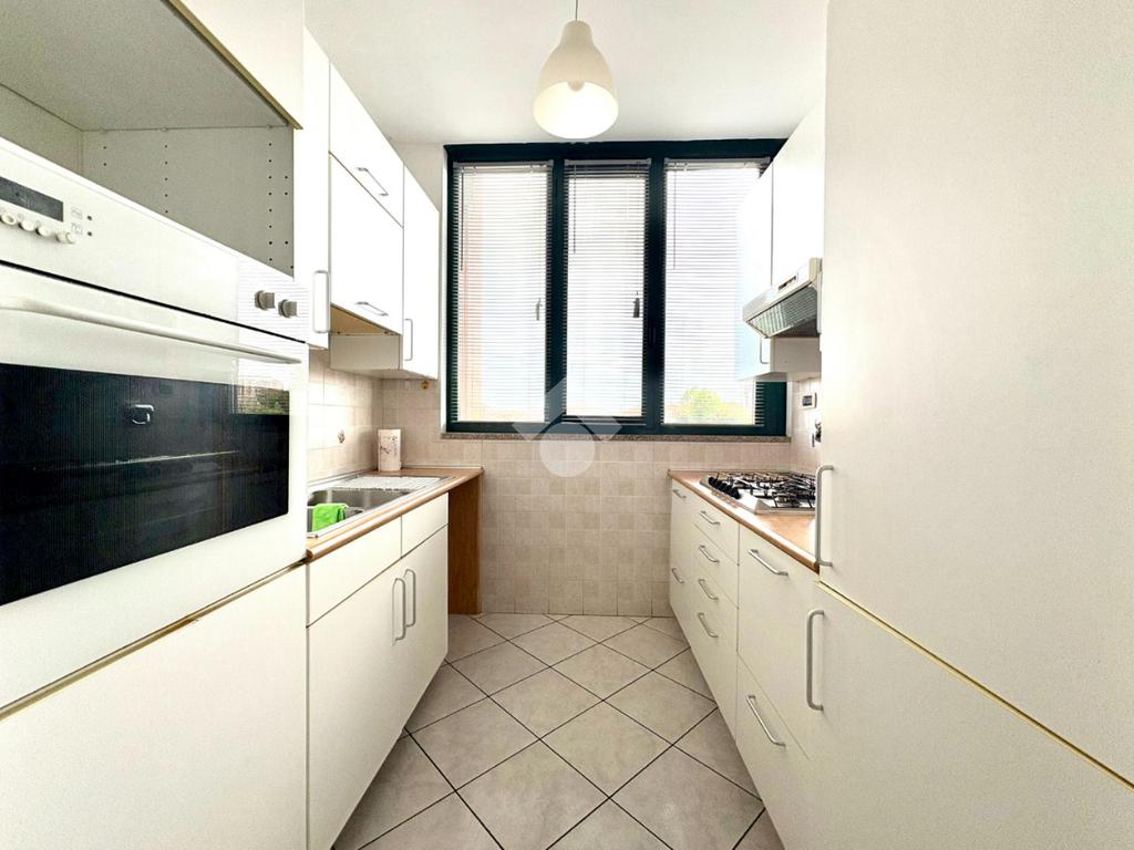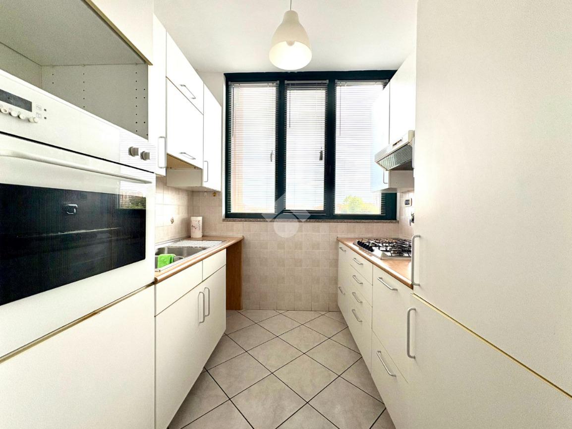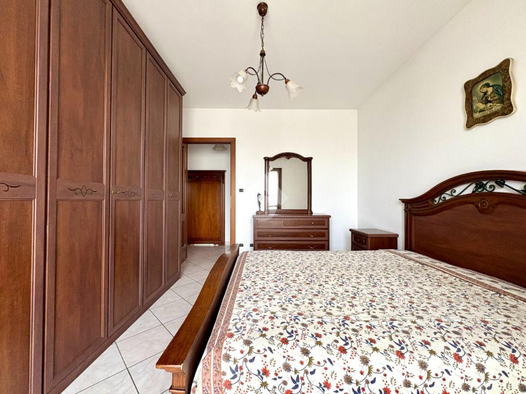 L'ampia camera da letto matrimoniale dispone di un'uscita diretta su un secondo balcone, offrendo un'ottima luminosità. Completa l'appartamento il servizio finestrato con vasca.