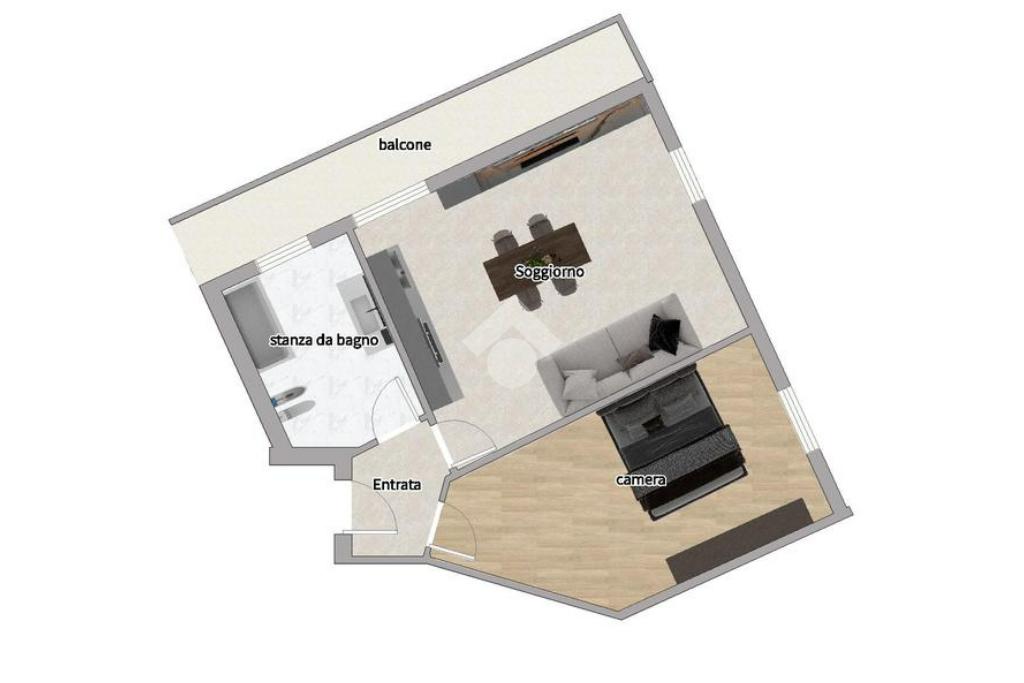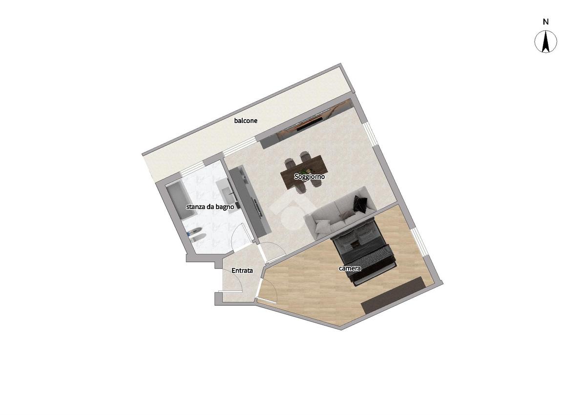 La zona giorno accoglie la cucina e il soggiorno in un unico grande ambiente con affaccio sul balcone. La camera da letto di generose dimensioni è perfetta per organizzare al meglio i propri spazi.
