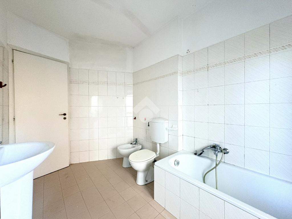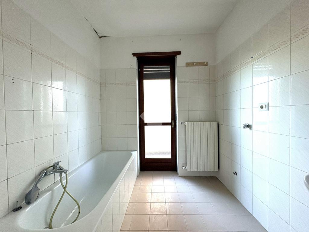 Il bagno anch'esso con affaccio sul balcone è dotato di vasca. Completa la proprietà una cantina al piano interrato, utile per riporre oggetti e vi è la possibilità di un posto auto coperto.