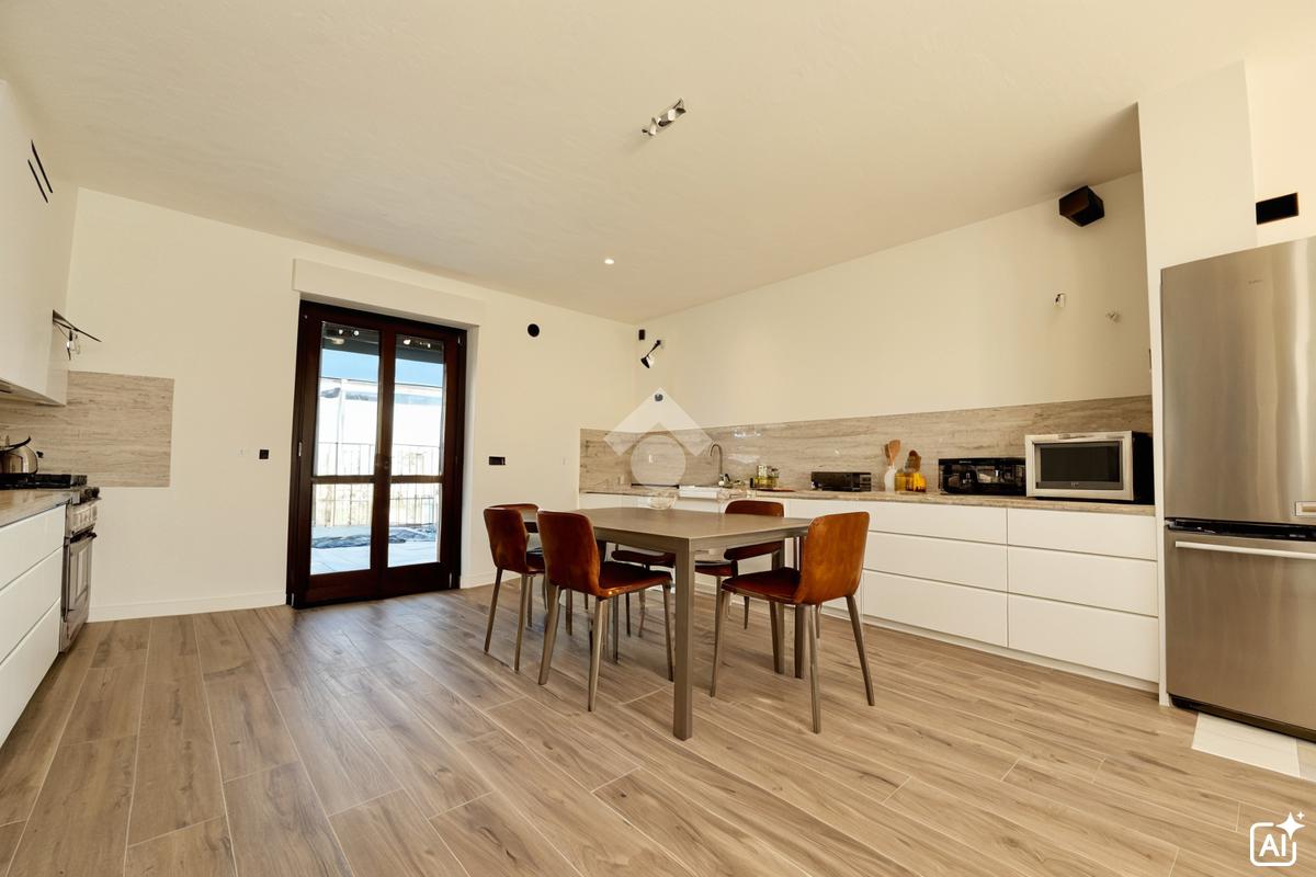 La porta blindata si apre, al piano terra, su un vasto e luminoso soggiorno doppio, dove, grazie alle ampie metrature, si può ricavare un'ulteriore camera da letto al piano.