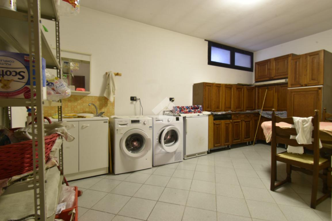 Al piano seminterrato, vi è un box auto doppio, una taverna accogliente e una lavanderia, rendendo questa casa estremamente funzionale.